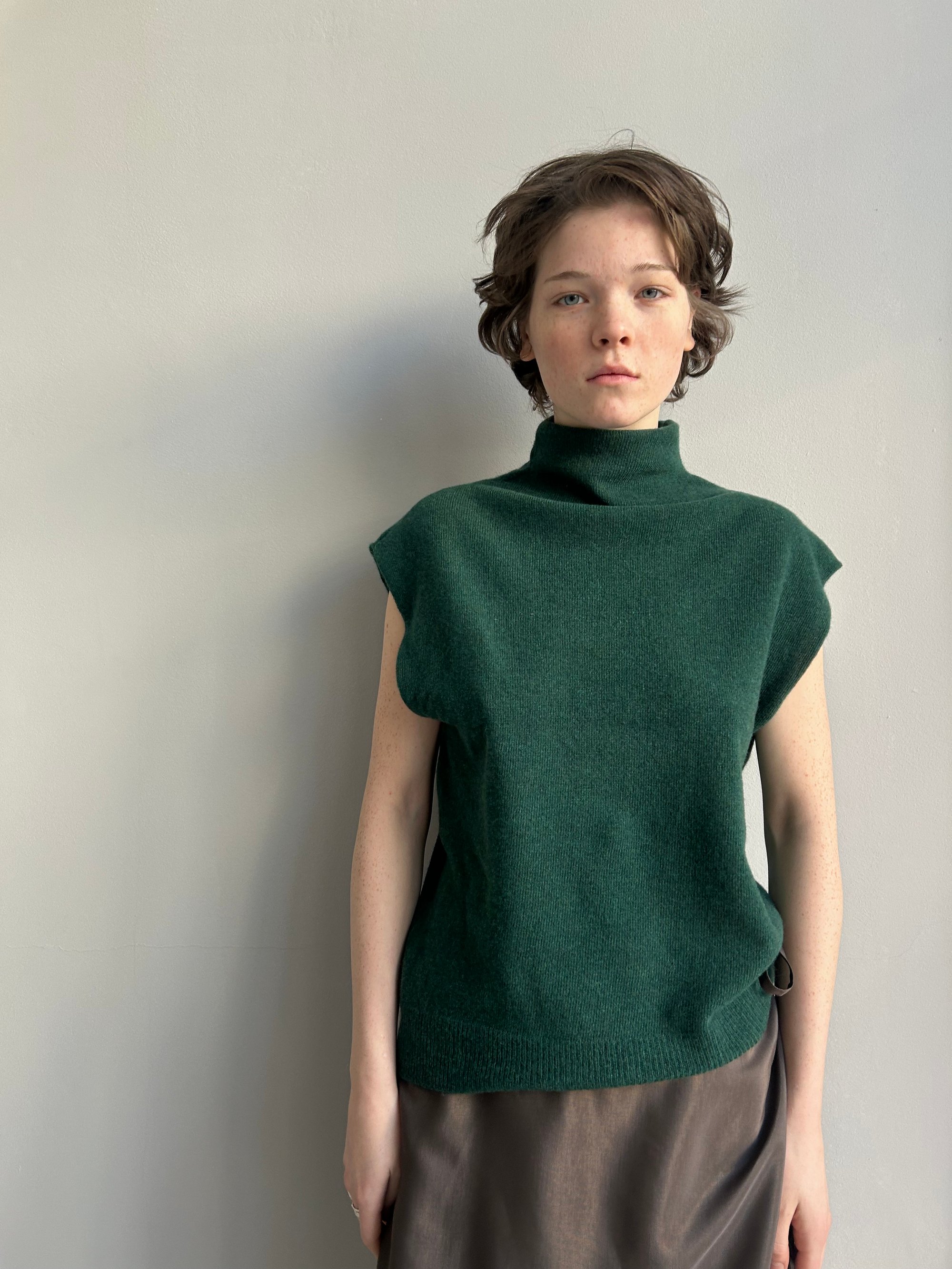 A refined sleeveless top knitted from ultra-fine Italian baby merino yarn.