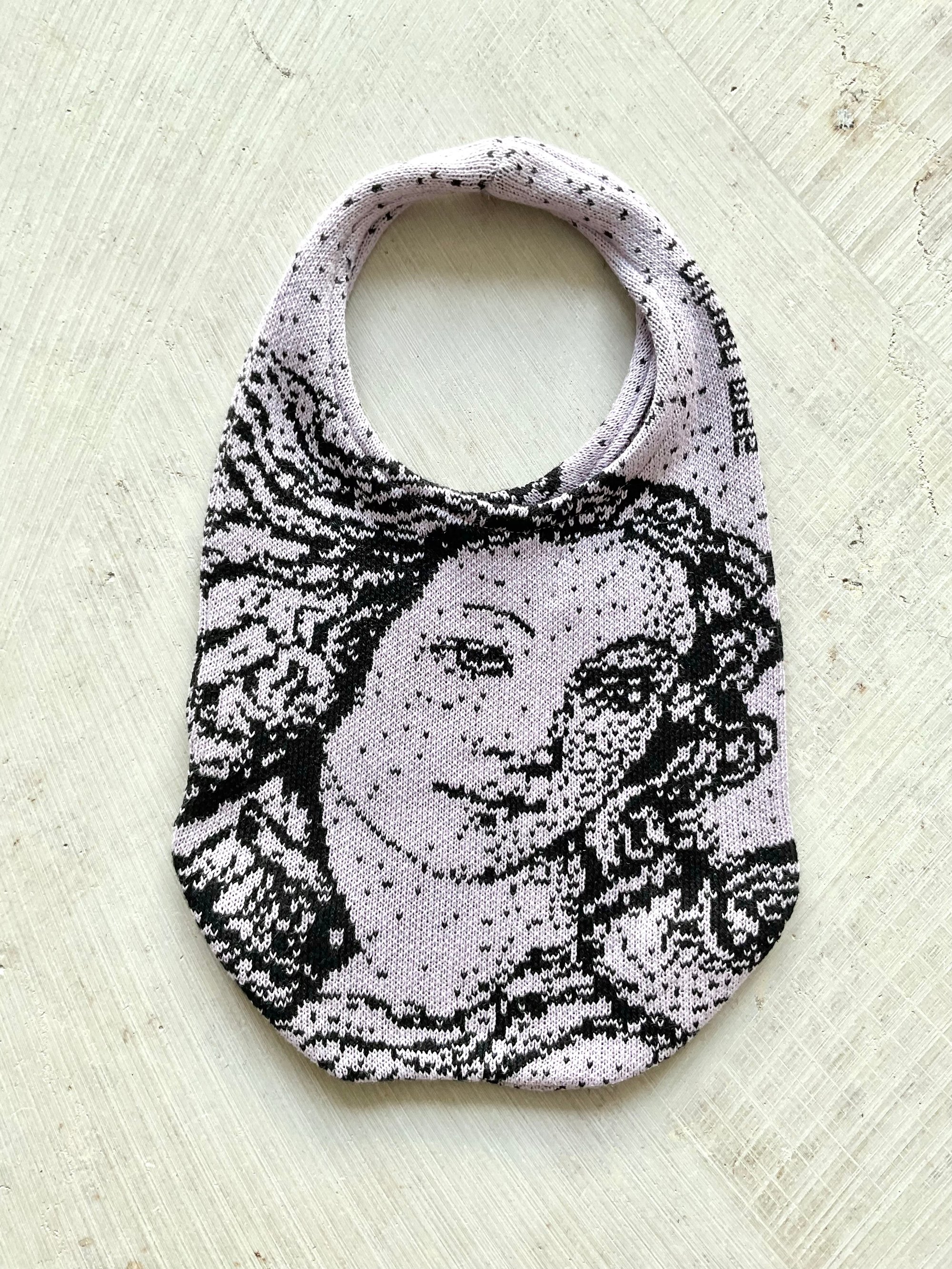 The Studio Knit Mini Bag is designed and knitted in our Berlin studio on our Shima Seiki machine, using our own in-house artwork. Its soft jacquard texture and sculptural shape create a small yet striking accessory that feels like a wearable piece of knit art.
